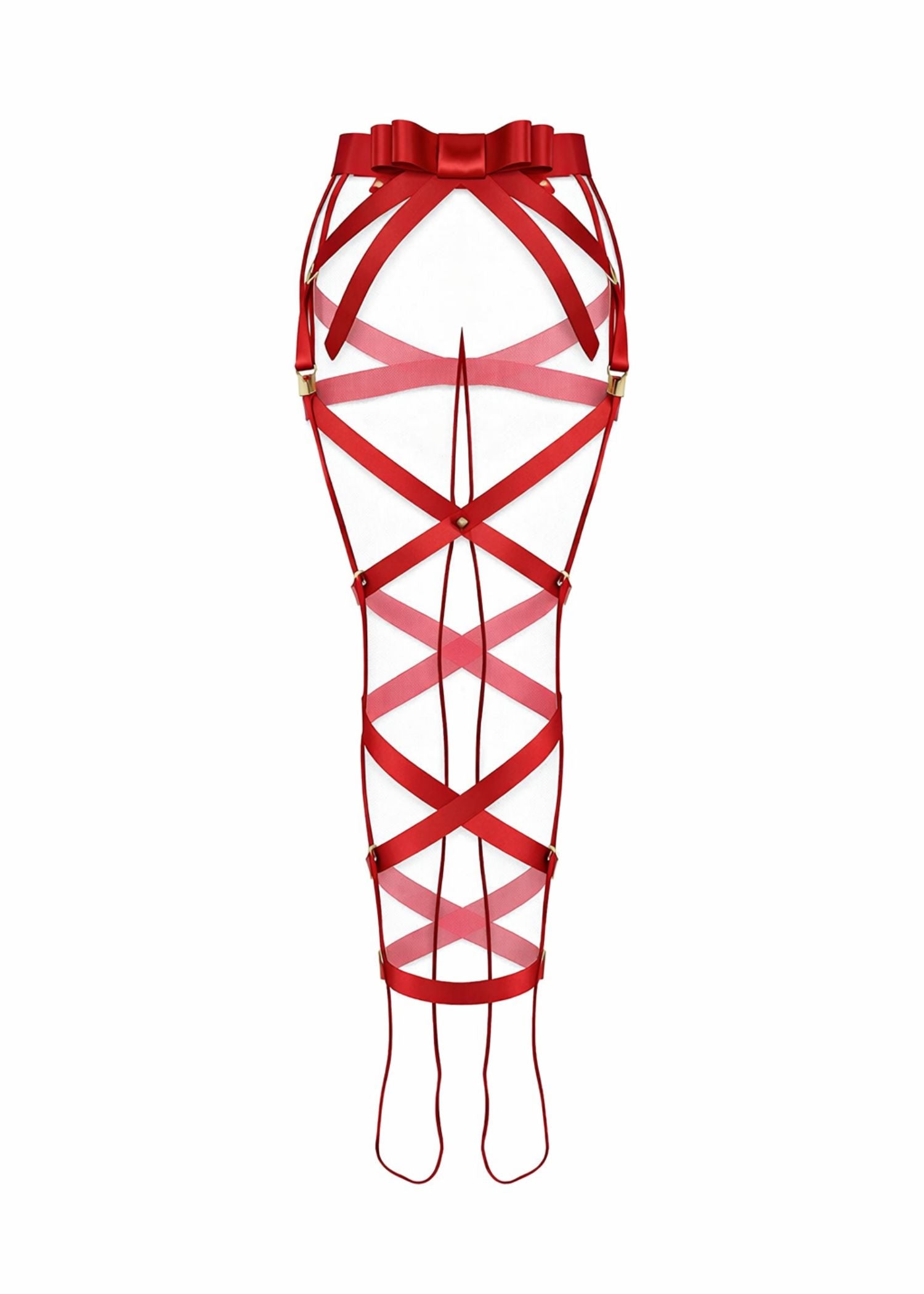 Designed to frame the legs with intention, this striking piece features delicate bowknot detailing paired with sleek straps that create a beautifully controlled silhouette. Crafted for comfort as much as allure, the adjustable design allows for a personalised fit while maintaining a refined, polished look.